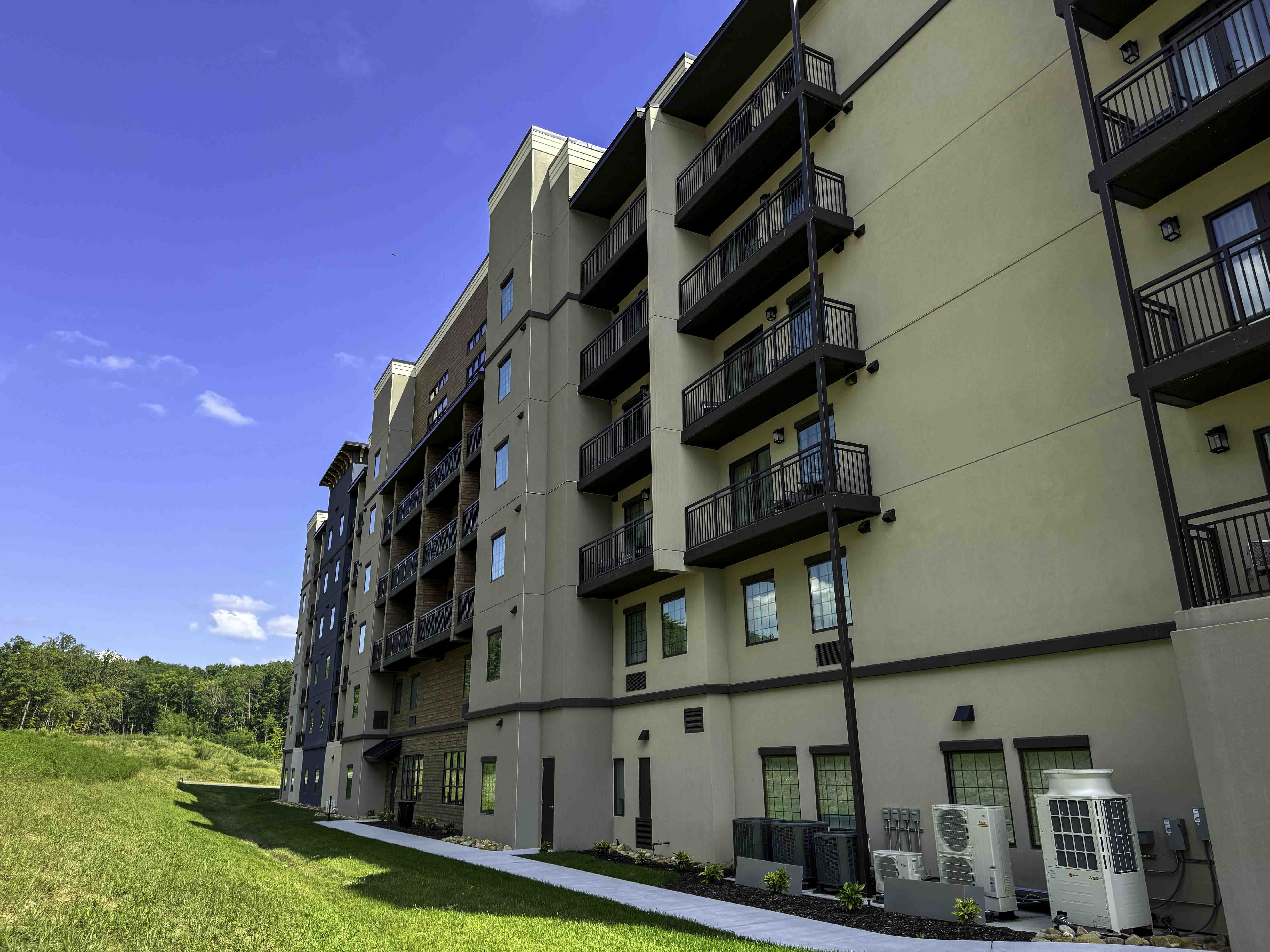 Scale and Specialized LayoutsThe project encompasses 112 spacious suites across several floor plans, ranging from 374-square-foot studios to expansive 948-square-foot two-bedroom units. Every suite was built to include fully equipped kitchens and separate living areas, requiring precision in mechanical, electrical, and plumbing (MEP) integration across all four floors.